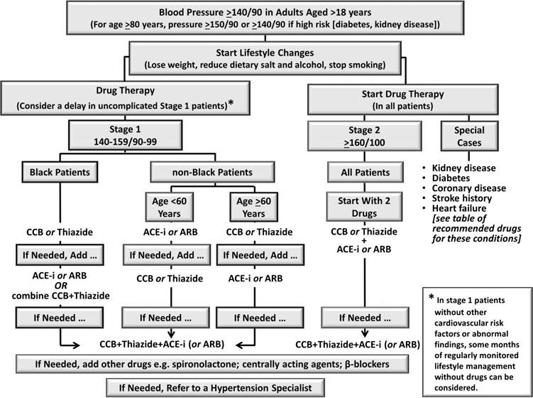 Nguồn: Clinical practice guidelines for the management of hypertension in the community – A statement by the American Society of Hypertension and the International Society of Hypertension 2013, Journal of Hypertension, January 2014 – volume 32 – Issue 1 – p 3-15