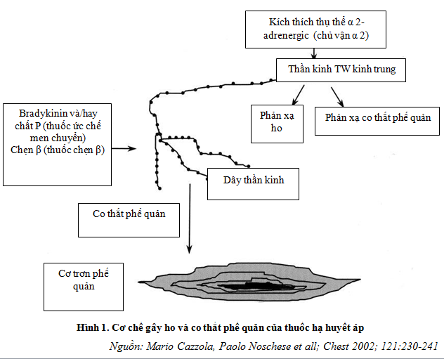 Hình 1. Cơ chế gây ho và co thắt phế quản của thuốc hạ huyết áp