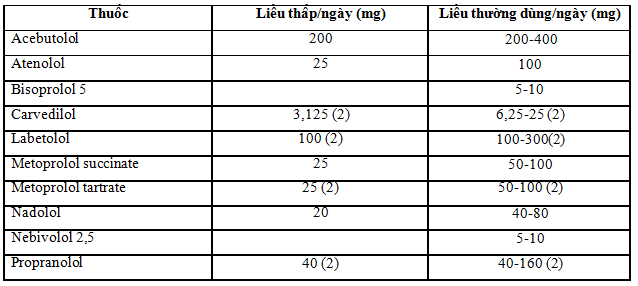 (4) Điều trị có thể khởi đầu với liều thấp thuốc chẹn β chọn lọc tim và tăng liều nếu không có những tác dụng phụ trên lâm sàng.