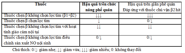 + Trong nghiên cứu điều trị liên tục, nhóm điều trị thuốc chẹn β chọn lọc tim không khác nhau về đáp ứng FEV1, triệu chứng hô hấp hay đáp ứng với chủ vận β2.