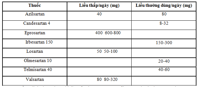 Bảng 5. Liều lượng thuốc kháng thụ thể angiotensin II