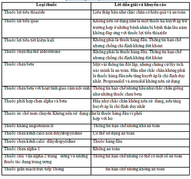 Bảng 9. Tóm tắt lời dẫn giải và khuyến cáo sử dụng thuốc hạ huyết áp ở bệnh nhân bệnh phổi tắc nghẽn mạn tính và hen