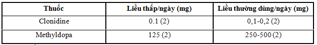 Bảng 7. Liều lượng thuốc chủ vận α2 trung ương và những thuốc tác dụng trung ương