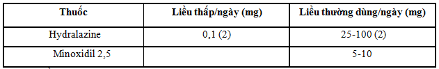 Bảng 8. Liều lượng thuốc giãn mạch trực tiếp
