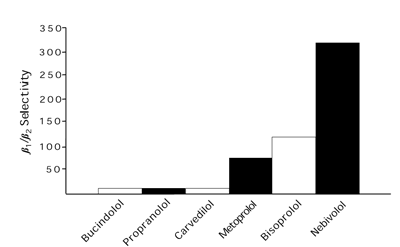 Nebivolol đã được so sánh với atenolol, metoprolol và bisoprolol.
