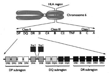 Xen kẽ hai hệ thống locus trên còn có các hệ thống locus khác như xen giữa gen lớp I và lớp II còn có gen lớp III (gen bổ thể). Giữa các gen lớp III còn có gen CYP21A và CYP21B mã hóa cho tổng hợp hormone tuyến thượng thận. Các gen HLA đều đồng trội, liên kết chặt chẽ và di truyền cùng nhau. Chính vì vậy, khả năng tìm được hai người có sự phù hợp HLA là rất khó, có thể gặp ở hai người có cùng huyết thống. Vì thế đây là các hệ thống gen có ý nghĩa đặc biệt quan trọng trong việc thải trừ các mô ghép do chúng kiểm soát việc tổng hợp nên các kháng nguyên bề mặt tế bào bạch cầu của người dưới dạng các chuỗi polypeptid cắm sâu vào màng sinh chất và nhô ra ngoài bề mặt tế bào [1], [2].
