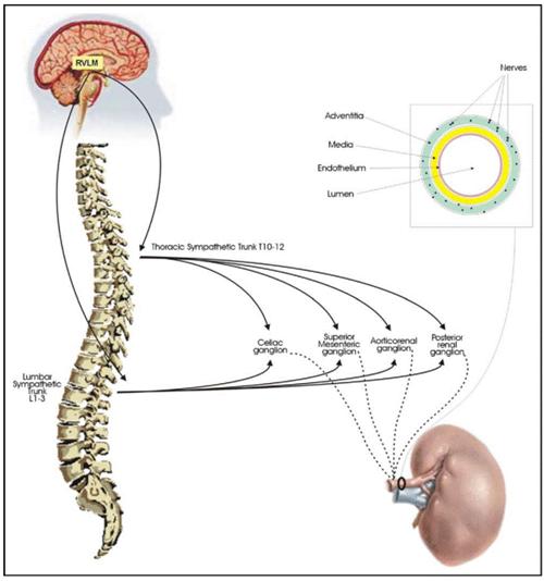 Hình 1: Lược đồ phân bố thần kinh giao cảm thận [3]