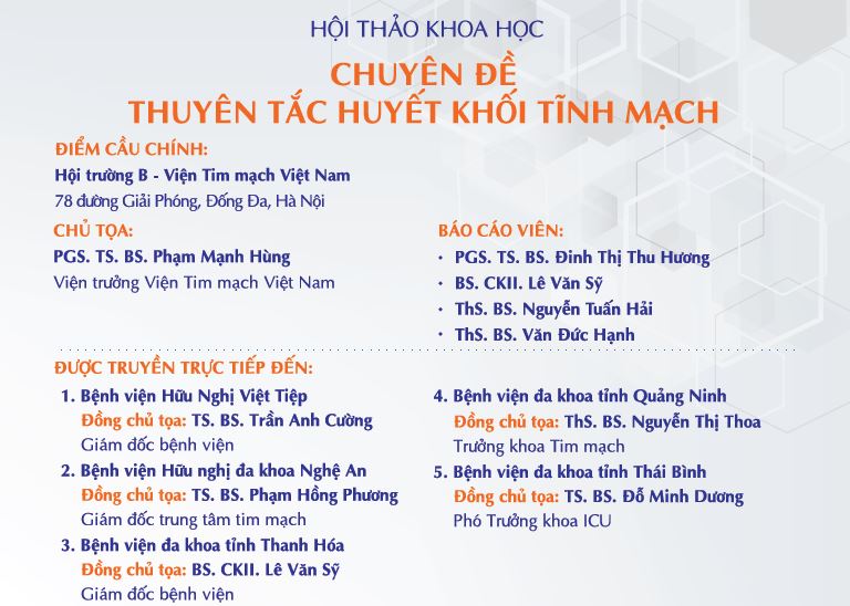 Buổi hội thảo sẽ là nơi cung cấp những kiến thức bổ ích về thuyên tắc huyết khối tĩnh mạch cho quý đồng nghiệp.
