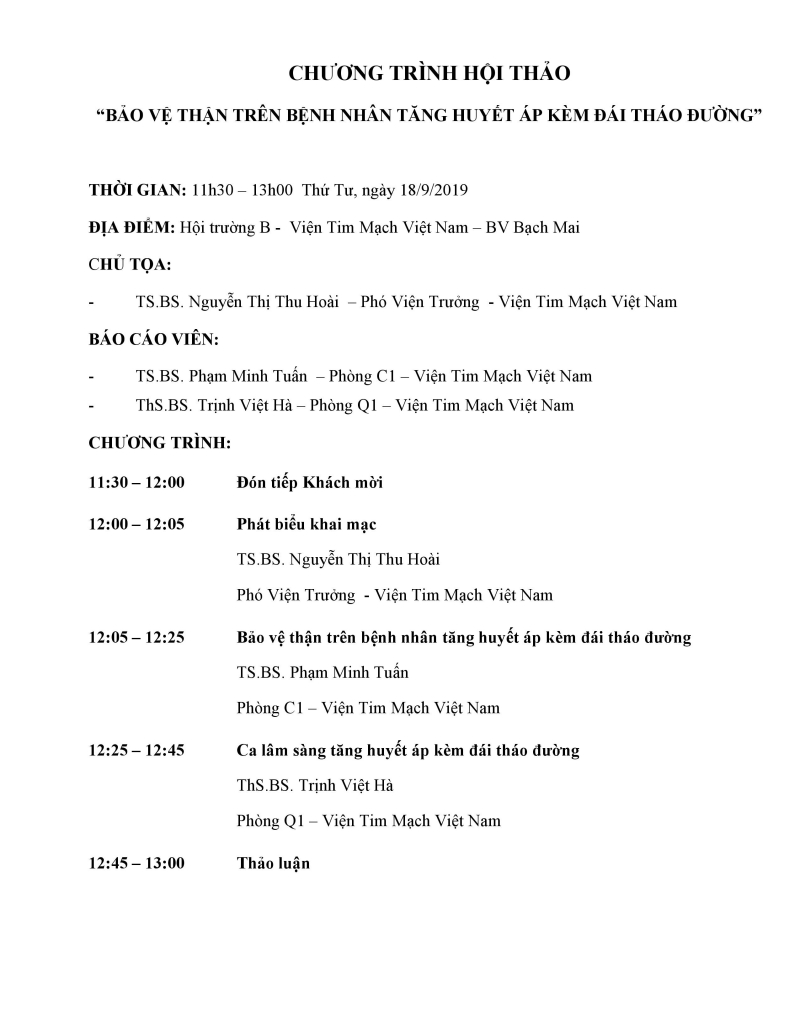Địa điểm: Hội trường B Viện Tim mạch Việt Nam