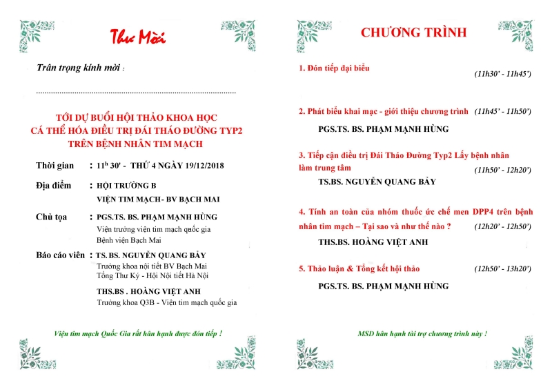 Địa điểm: Hội trường B Viện Tim mạch Việt Nam