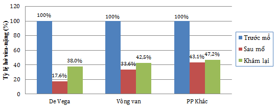 Tỷ lệ hở VBL vừa và nặng ở nhóm sửa VBL De Vega có xu hướng tăng nhanh hơn so với sửa VBL có vòng van và phương pháp khác.