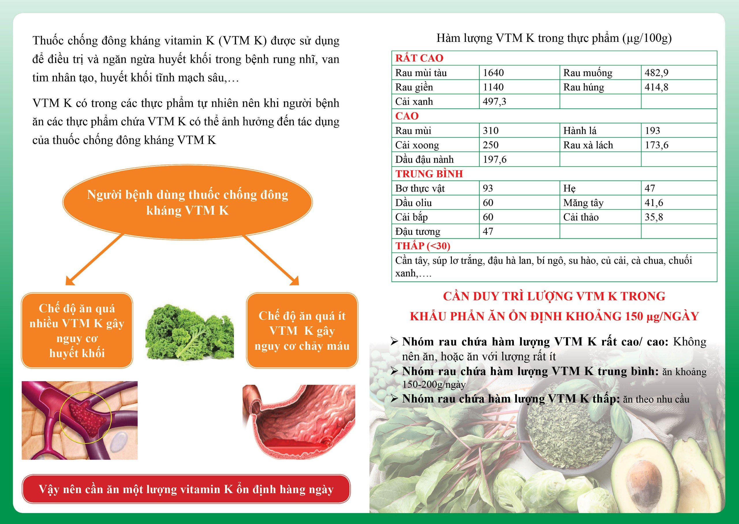 Lựa chọn thực phẩm khi dùng thuốc chống đông kháng vitamin K