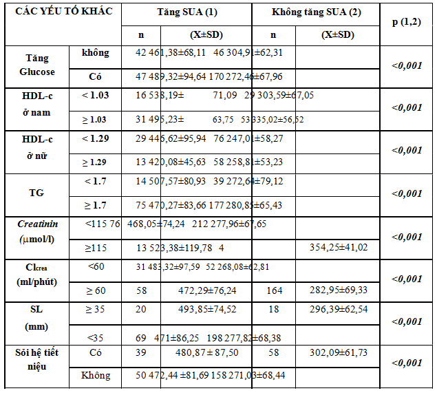 Bảng 4. NĐTB SUA với một số yếu tố liên quan