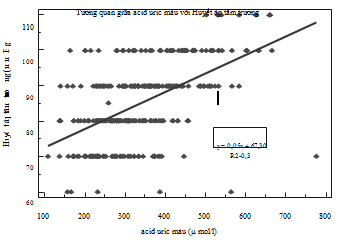 – Có mối tương quan thuận không đáng kể giữa nồng độ acid uric huyết thanh với tuổi (r = 0,123; p
