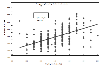 Biểu đồ 1. Biểu đồ tương quan giữa nồng độ SUA với HATTr