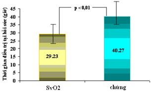 – Thời gian trung bình điều trị tại hồi sức rút ngắn ở nhóm SVO2 (29,23 ± 7,82 vs. 40,27 ± 9,04 giờ ; p