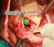 Viêm nội tâm mạc nhiễm khuẩn (VNTMNK) trên nhiều van tim lan rộng ra xung quanh và xuống vách liên thất là một tình huống lâm sàng khó khăn trong phẫu thuật. Chúng tôi báo cáo một trường hợp VNTMNK trên van hai lá, van động mạch chủ có áp xe toàn bộ vòng van và lan rộng xuống vách liên thất được mổ thành công. Sau khi cắt lọc tối đa toàn bộ van hai lá, ổ áp xe gốc động mạch chủ và một phần vách liên thất, gốc động mạch chủ được đóng lại. Một ống mạch nhân tạo có van được dùng để nối tắt giữa mỏm thất trái và động mạch chủ xuống và thay van hai lá cơ học. Các động mạch vành được cấp máu từ động mạch chủ lên qua cầu nối bằng ống mạch nhân tạo. Bệnh nhân ra viện hoàn toàn ổn định sau mổ một tháng.