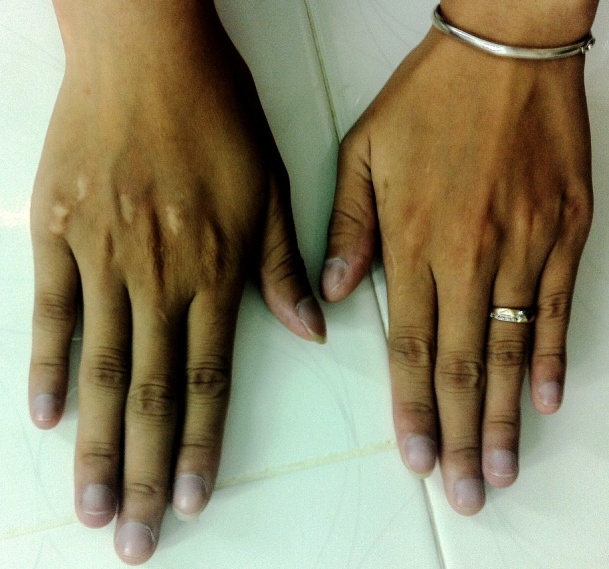 Hình 1: Tím đầu chi (ảnh chụp bàn tay bệnh nhân)
