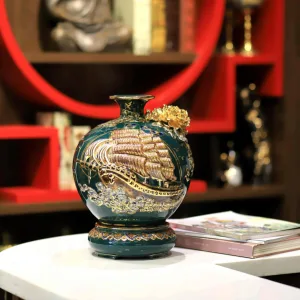 Bình hút lộc Thuận Buồm Xuôi Gió men xanh lục bảo vẽ vàng