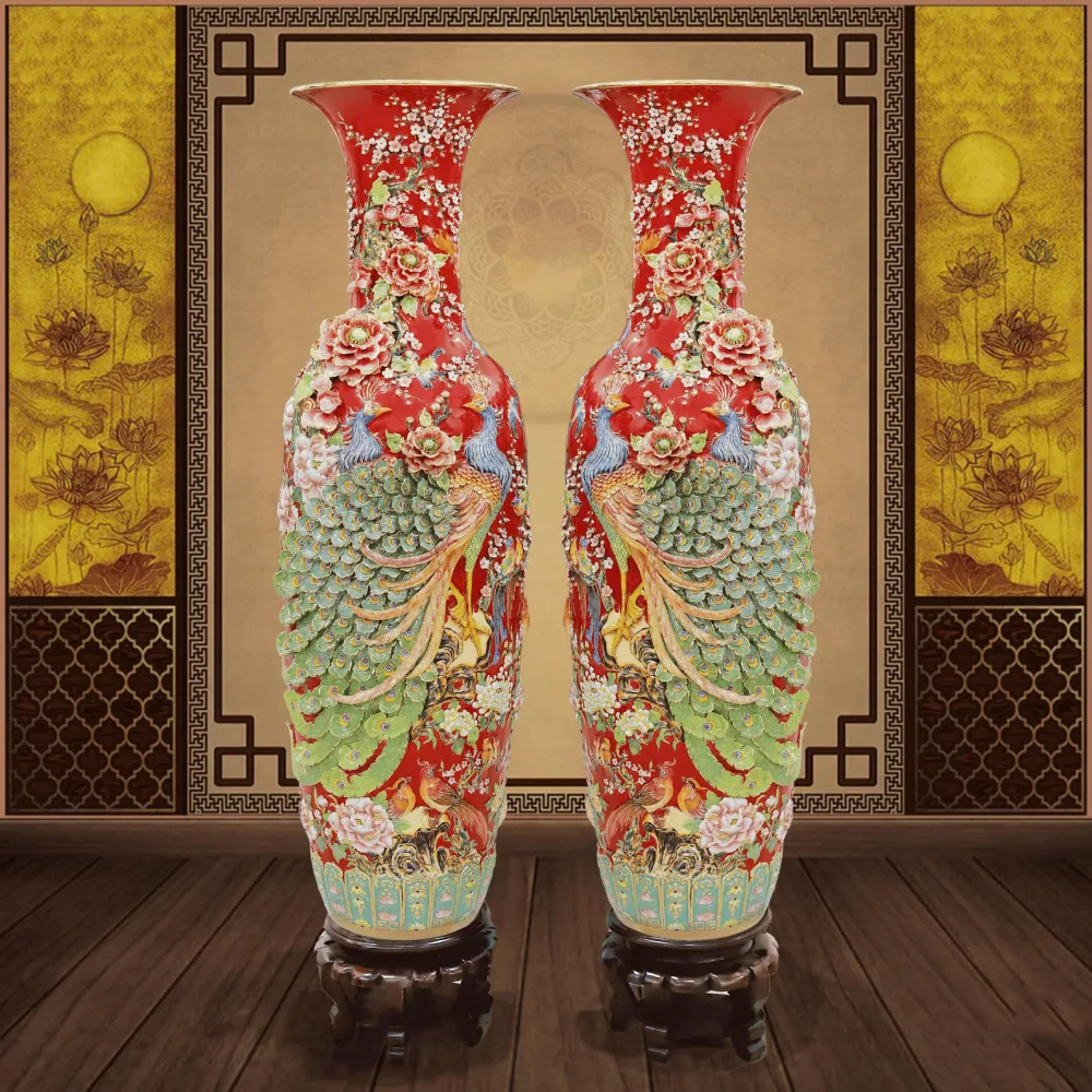 Lộc bình Phú Quý Trường Xuân men đỏ vẽ màu vẽ vàng 1m6