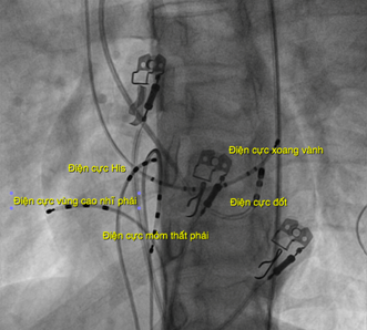 Hình 1: Các điện cực trong buồng tim, nghiêng trái 30