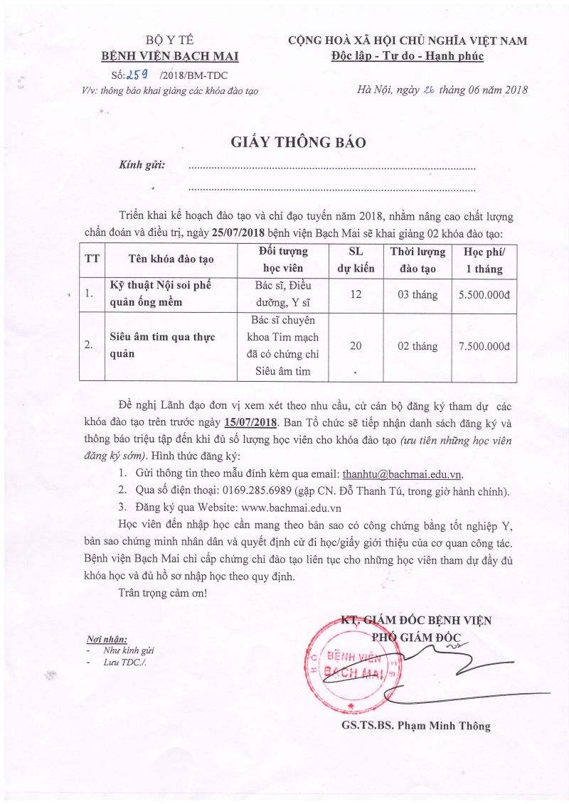 Thông báo tổ chức lớp “Siêu âm tim qua thực quản” 27/06/2018 Các khóa đào tạo tại Viện Tim mạch Biểu mẫu đăng ký.docx Chia sẻ: